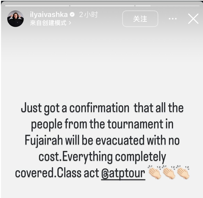 就在所有人都在期待ATP的表态,以及这件事的最终走向时,球员伊利亚·伊瓦什卡通过个人社交媒体第一时间对外透露,所有球员的抗争和外界为滞留球员的发声赢得了全面胜利,撤离中东包机费用事件画上了句号,结果让所有人都很满意。